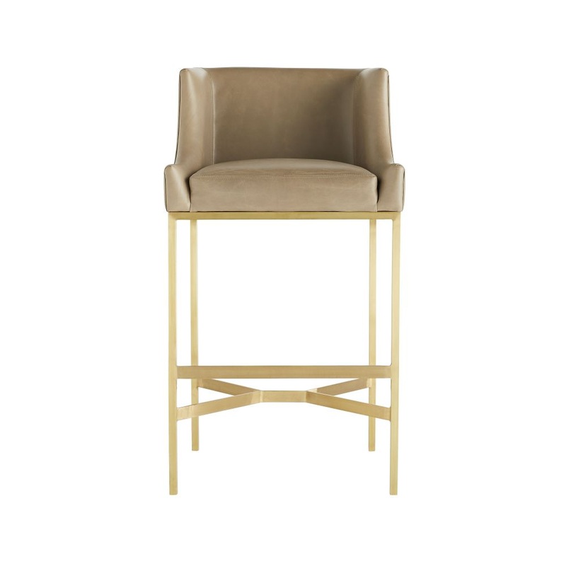 Pill Counter Stool with Upholstered Seat Gold / Cream Grey Boucle