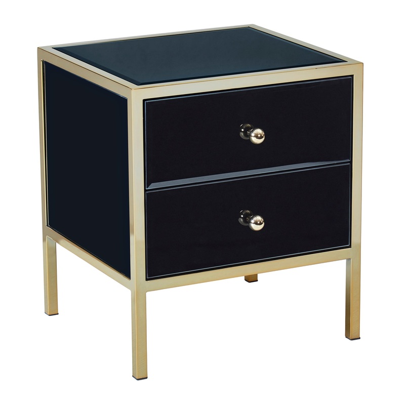 Georgie 2 Drawer Bedside Table – Black/Gold