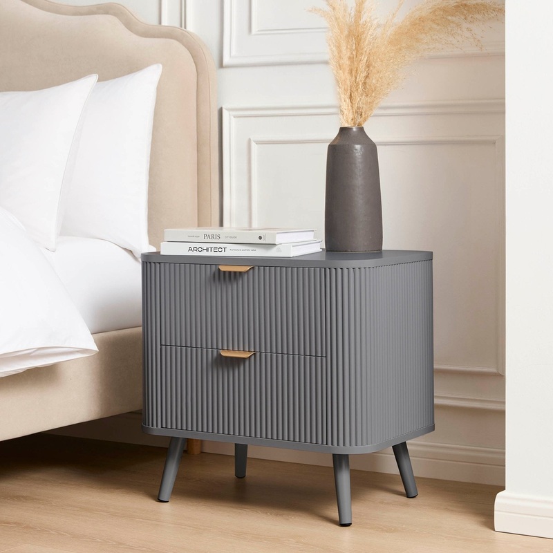 Evie 2 Drawer Bedside Table – White/Wood Effect