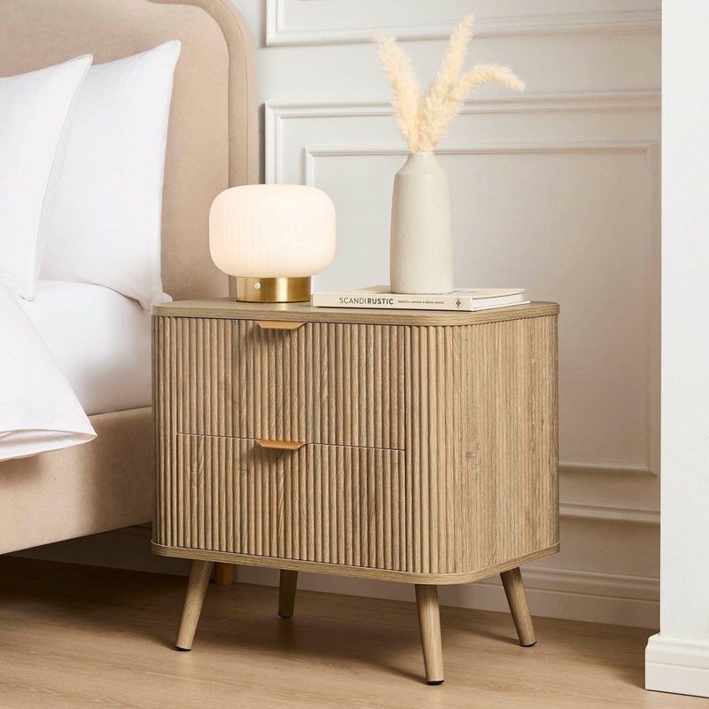 Heidi Oak 2 Drawer Bedside Table – Light Wood