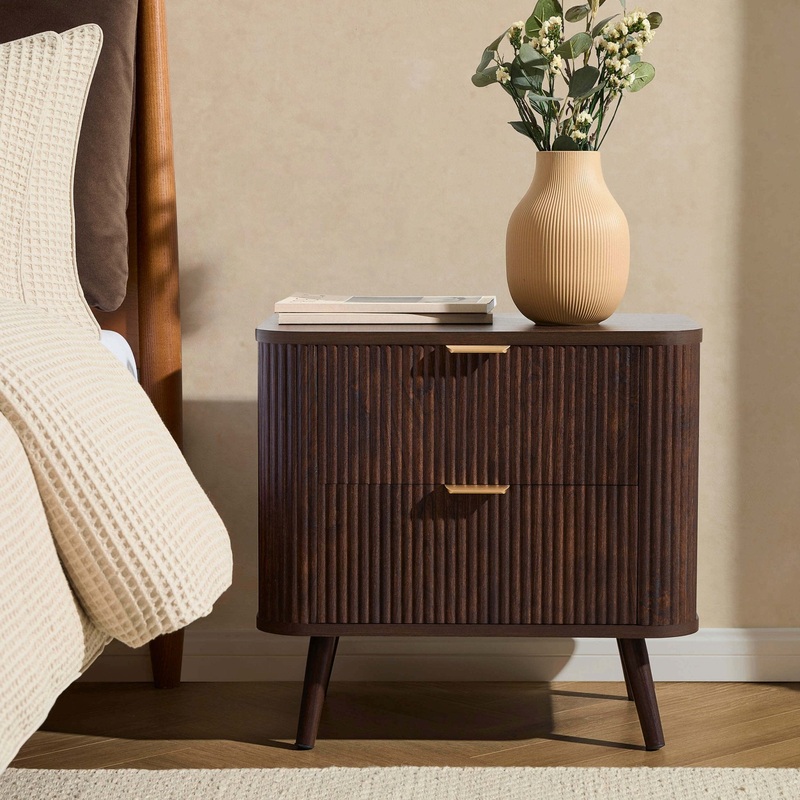 Finley Mango Wood 2 Drawer Bedside Table – Walnut