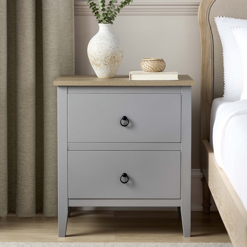 Monaco 2 Drawer Bedside Table – Grey High Gloss