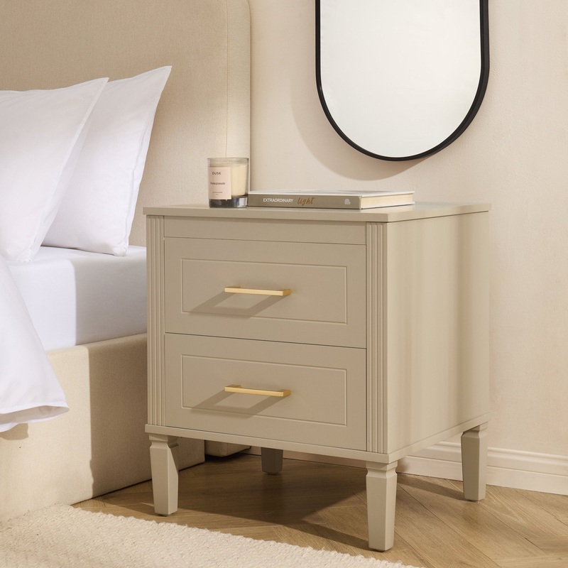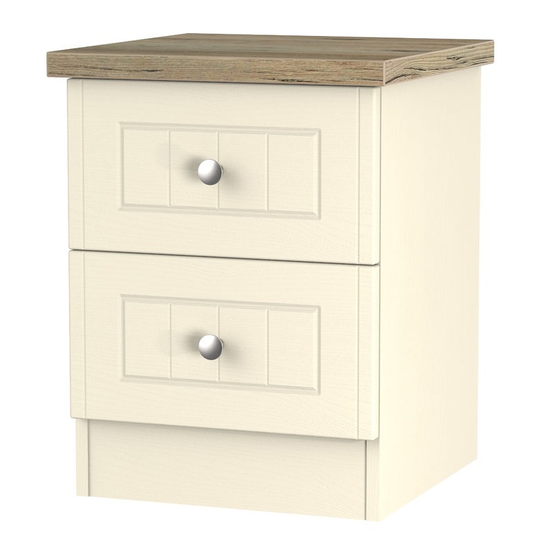 Vienna 2 Drawer Bedside Cabinet Cream Ash with Bardolino Top