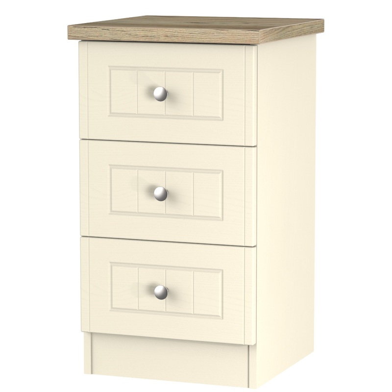 Vienna 3 Drawer Bedside Cabinet Cream Ash with Bardolino Top