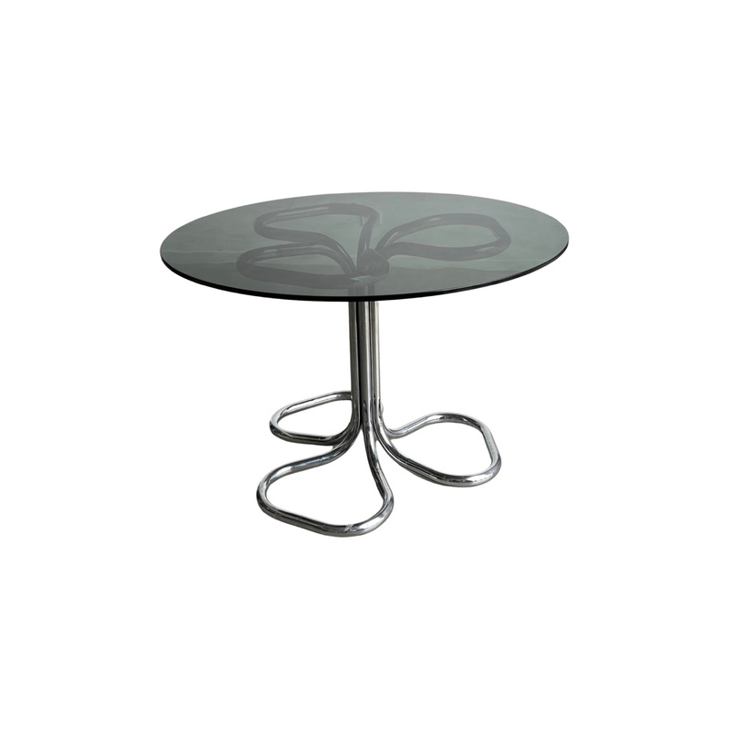 Giotto Stoppino round Glass and Chrome Round Dining Table,1970s