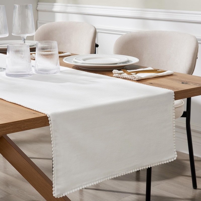 Girona Pom Pom Table Runner – White