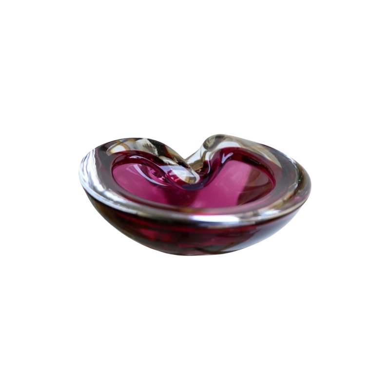 Italian Murano Sommerso Glass Dark Purple Round Ashtray
