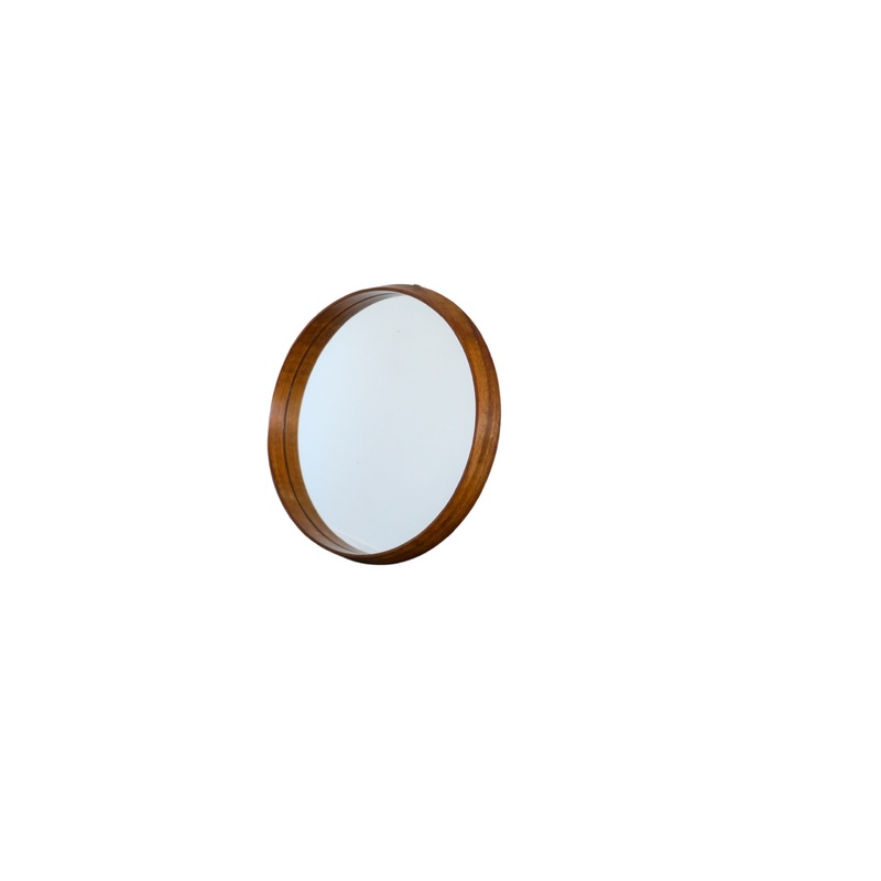 Italian Teak Round Wall Mirror, 1960s