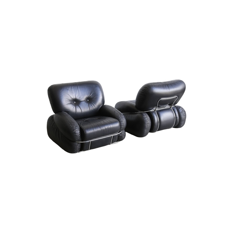 Italian Space Age Okay Armchairs by Adriano Piazzesi in Black Leather