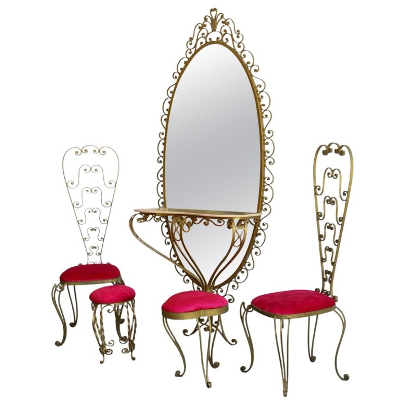 Italian Wrought Iron Console, Mirror and Chairs by Pierluigi Colli
