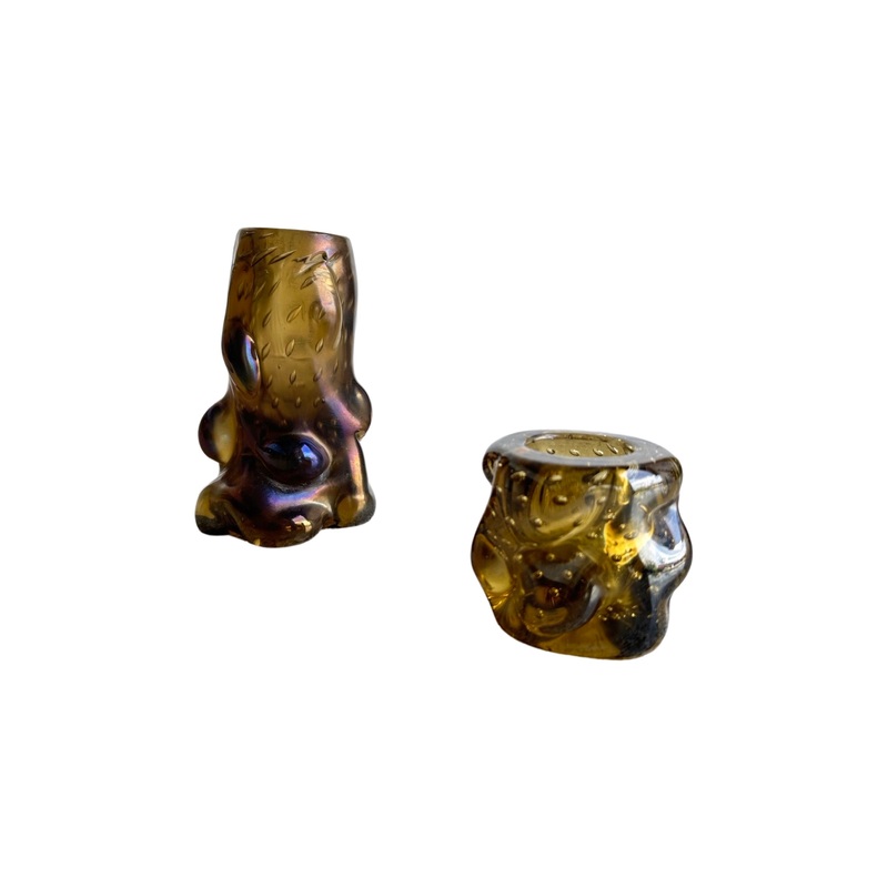 Murano Italian Black and Purple Thick Glass Candle Holders, 1960s