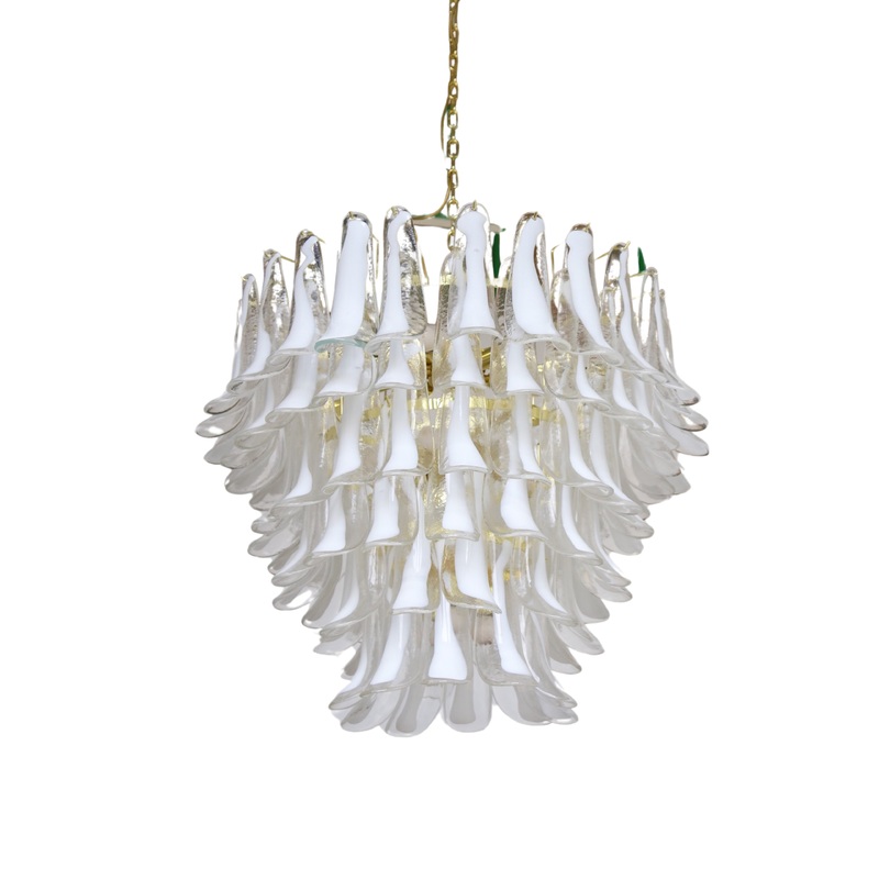 Murano White Glass Chandelier with Brass Frame, Contemporary