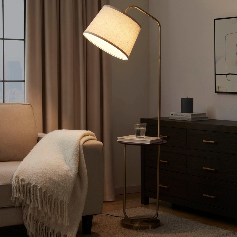 Orianna Floor Lamp with Side Table – Gold