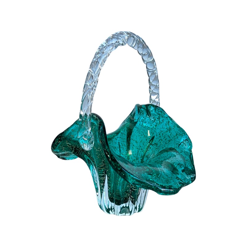 Archimede Seguso Green Murano Glass Basket, 1960s