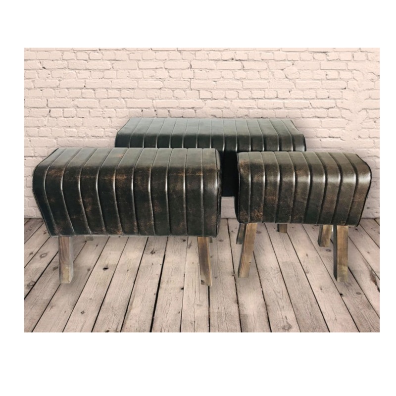 Rolled Dark Faux Leather pommel stool