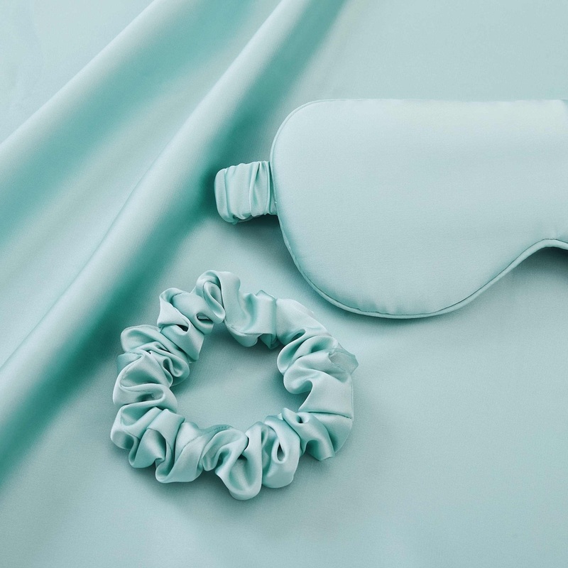 Satin Pillowcase, Eye Mask and Hair Tie Gift Set – Sage
