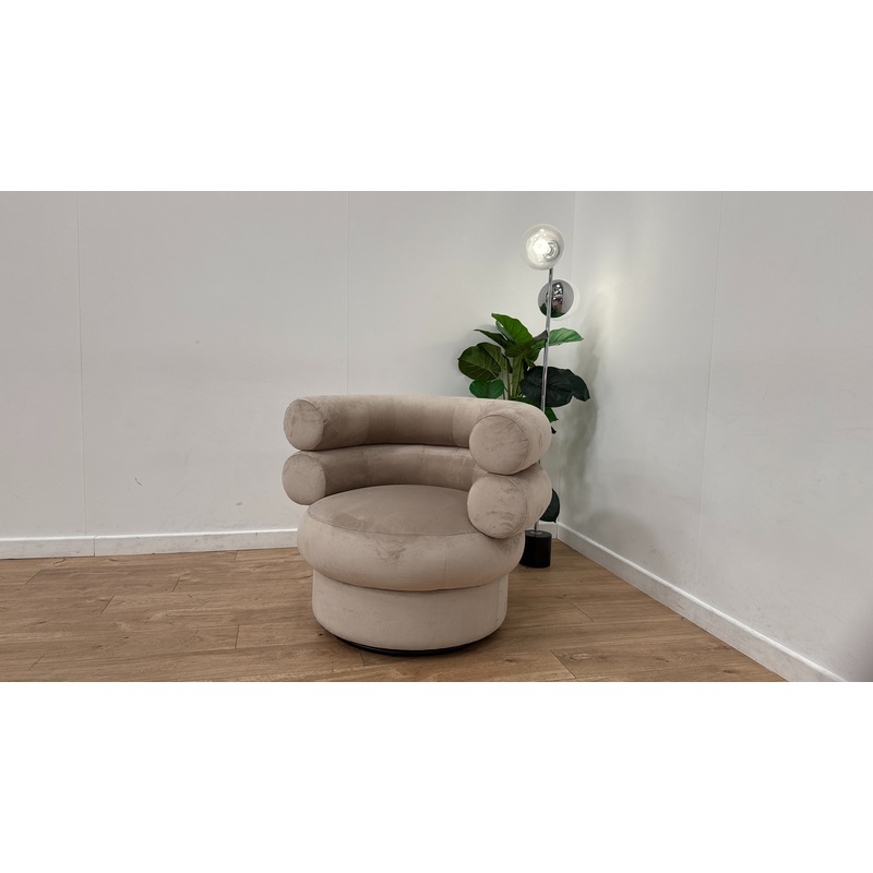 Sofology The Fitzrovia Fabric Swivel Chair in Matt Velvet Stone All Over Without Trim