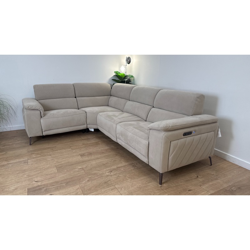 Sofology The Fratelli 1.5 Corner 3 Reclining Sofa in Lifestyle Nubuck Feel Fabric Stone