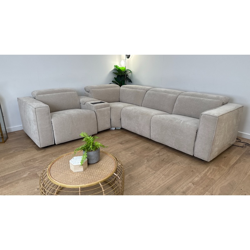 Sofology The Carrera 3 Corner 1.5 Console Fabric Recliner Sofa in Relaxed Chenille Cotton