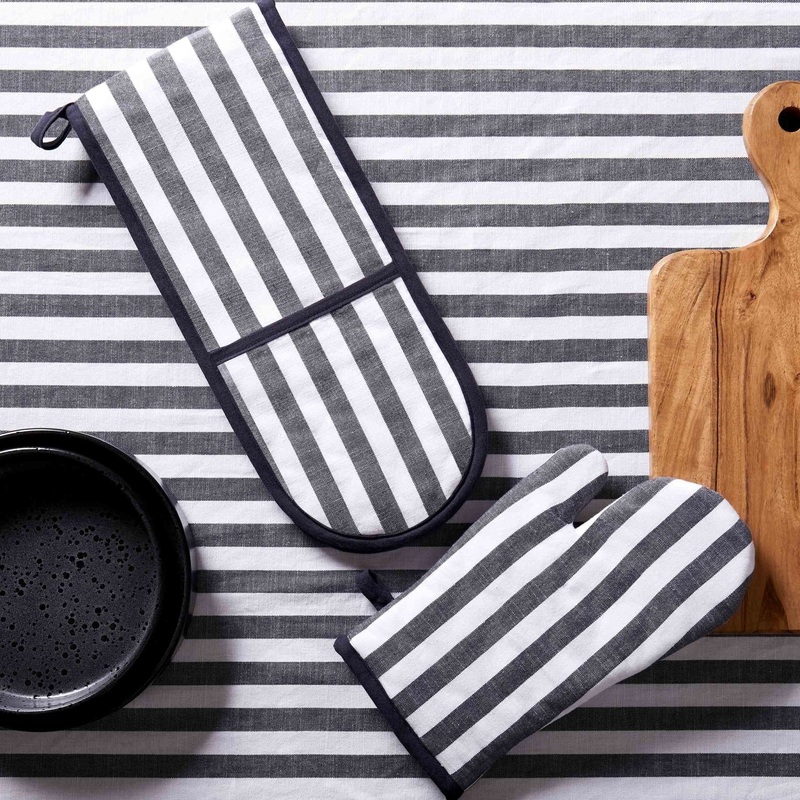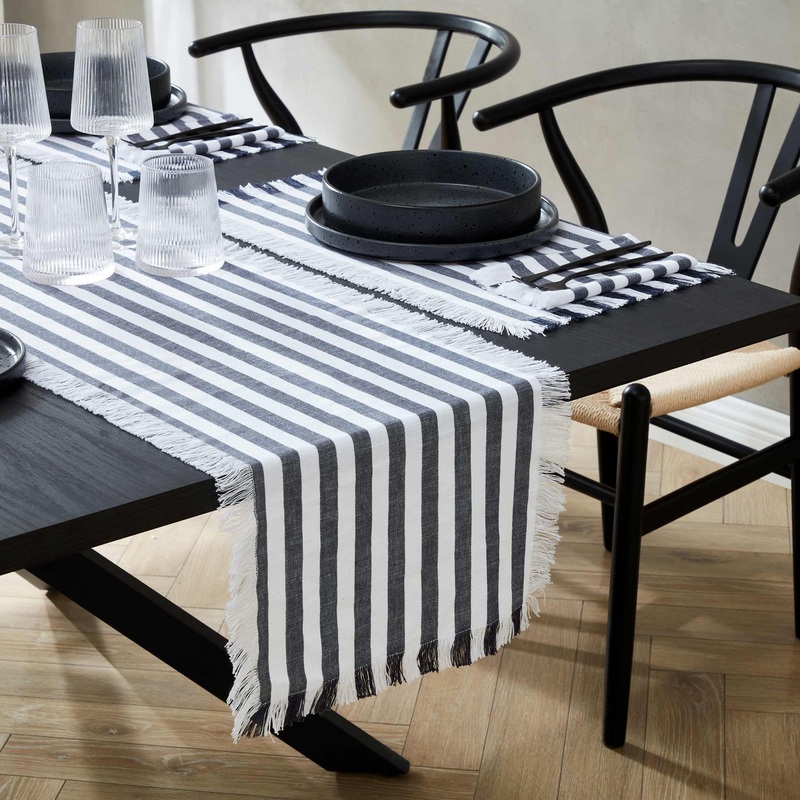 Stripe Fringed Edge Tea Towels – Pack of 3 – Navy