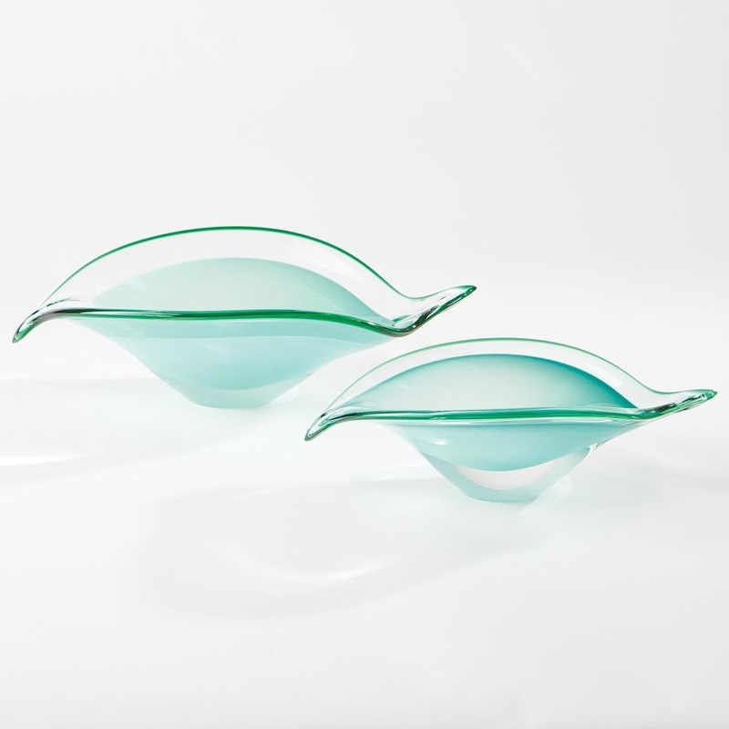 Bent Leaf Bowl-Aqua/Amber-Sm