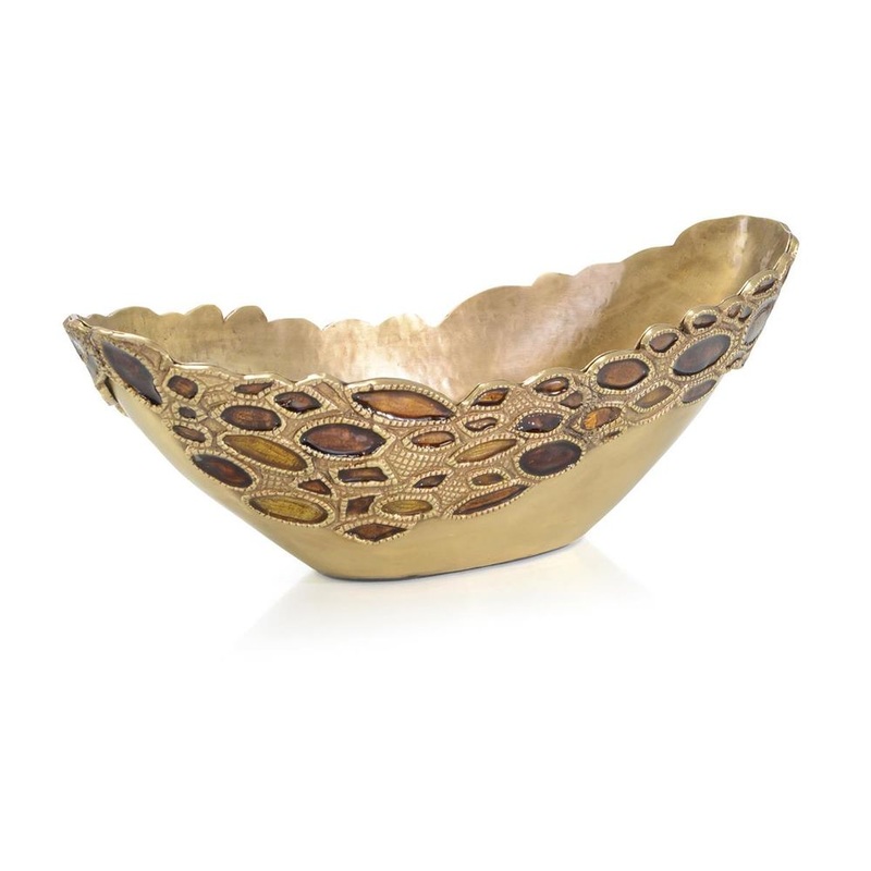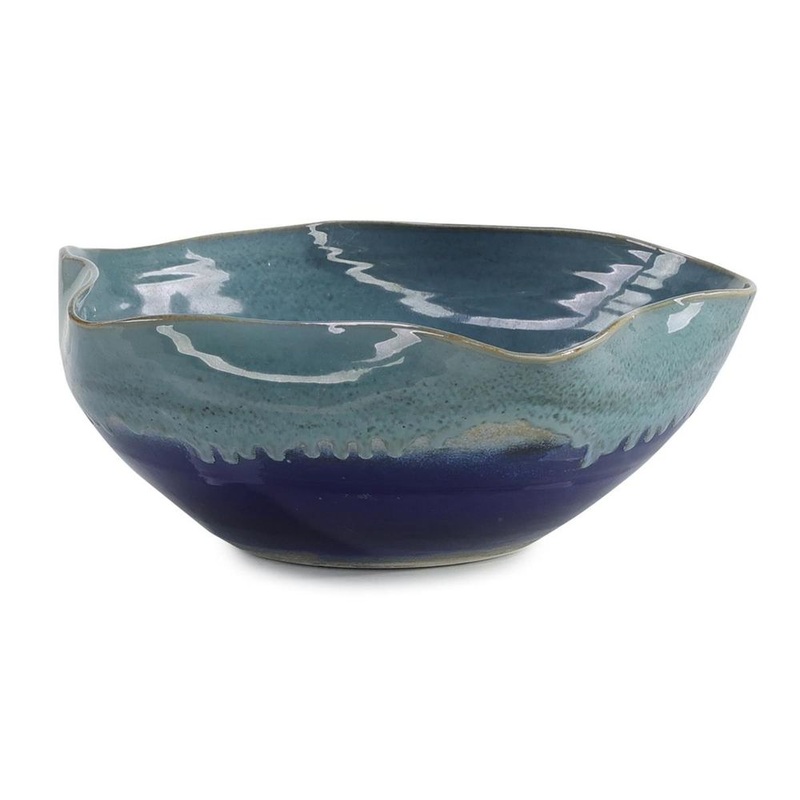 Bent Leaf Bowl-Aqua/Amber-Lg