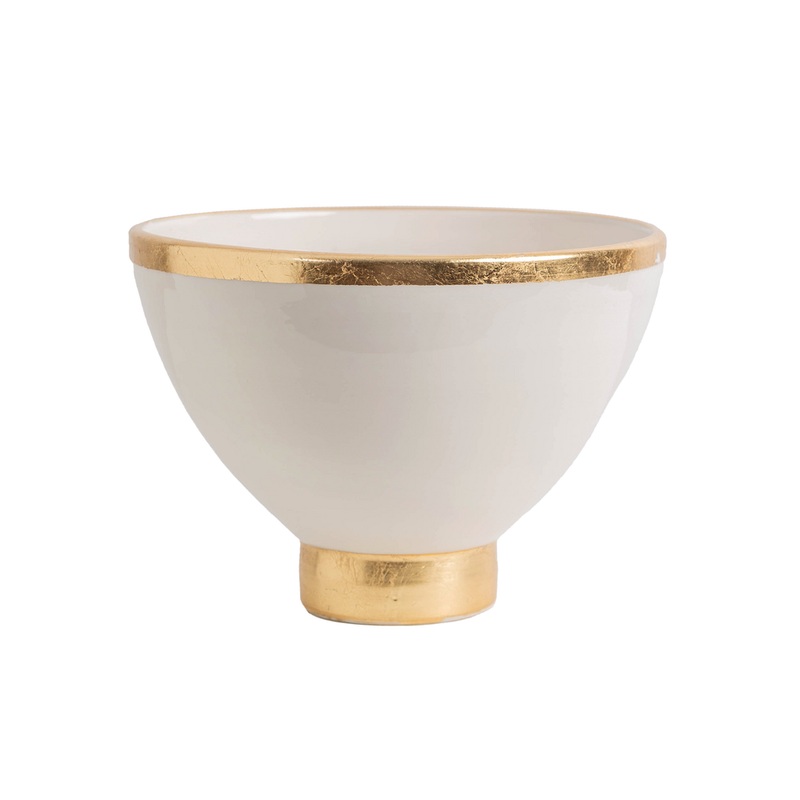 Contempo Collection, White Footed Bowl w/ Matte Gold, Large