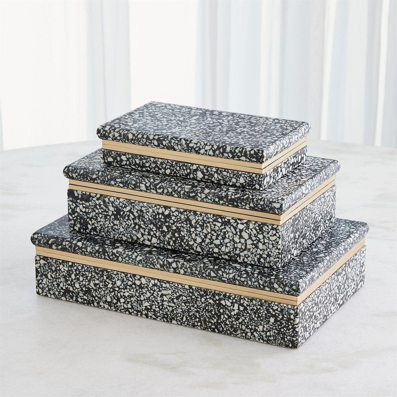 Set Of Two Charcoal Confetti Leather Boxes – Silver