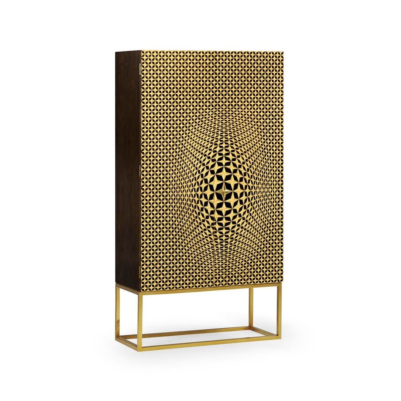 Garrick Black & Brown Wood | Black Metal Display Cabinet