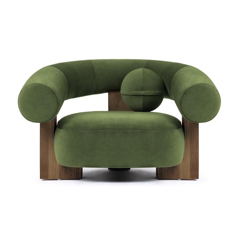 Liv – Liv Lounge Chair, Lichen Plush Velvet and Walnut