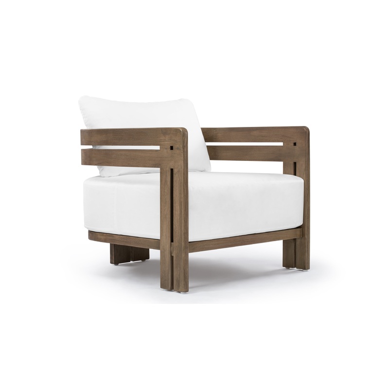 Lusso – Lusso Outdoor Lounge Chair, Weathered Teak with White Cushions