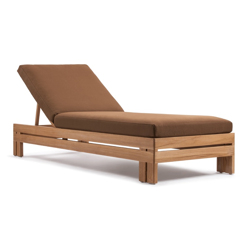Lusso – Lusso Outdoor Lounger, Natural Teak with Mocha Cushions