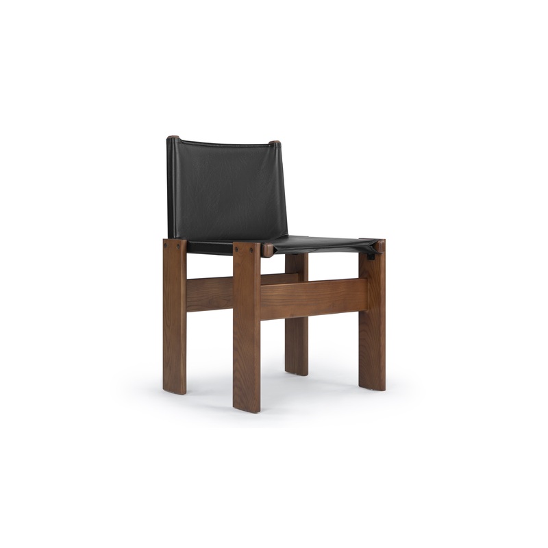 Monk – Monk Chair, Black Oil Wax Leather and Walnut