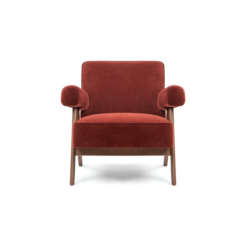 Pierre Jeanneret – Pierre Jeanneret Lounge Chair, Burgundy Silken Velvet