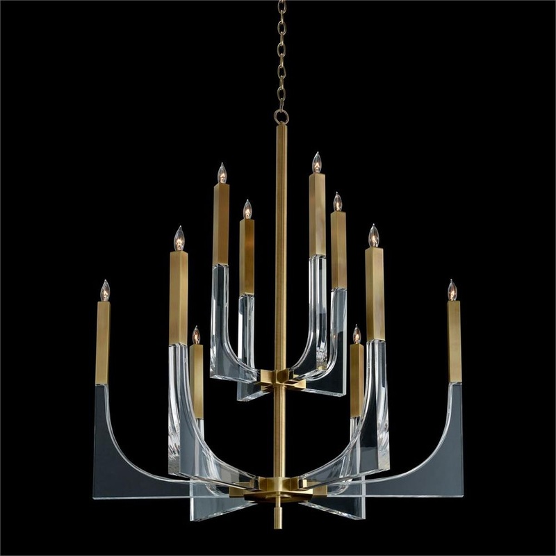 Acrylic And Brass Ten-Light Chandelier – Clear