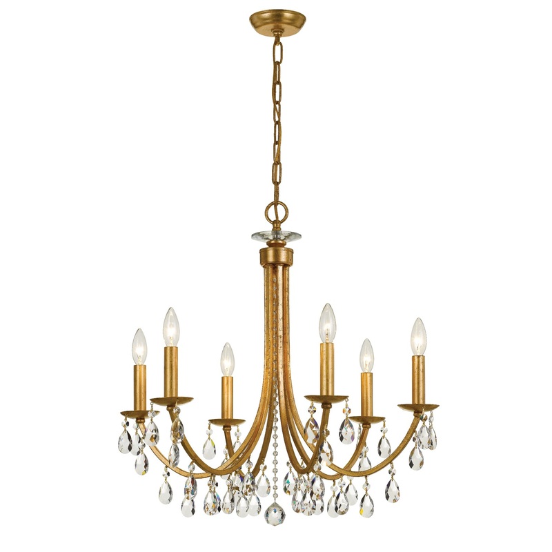 Bridgehampton 6 Light Spectra Crystal Antique Gold Chandelier