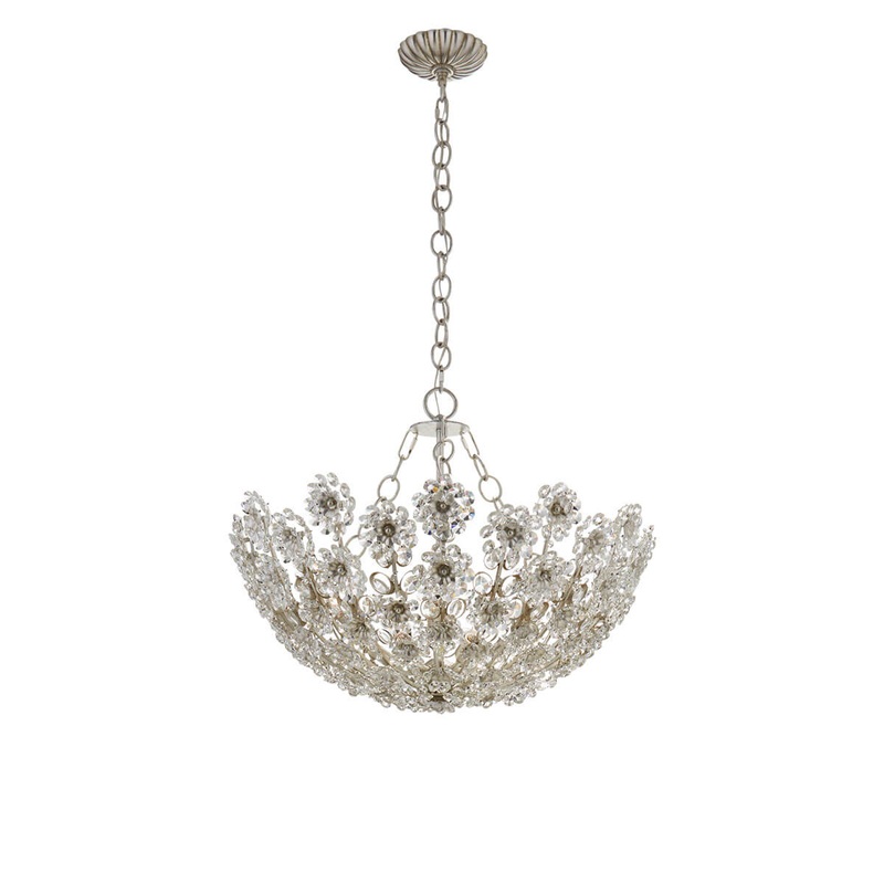 Churippu Magnolia & Tulip Glass Silver Leaf Vertical Twenty-One Light Chandelier – Silver