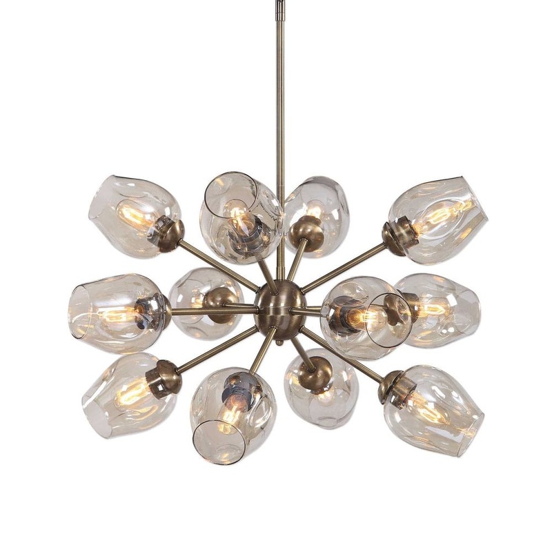Churippu Magnolia & Tulip Glass Bronze Twelve-Light Halo Chandelier