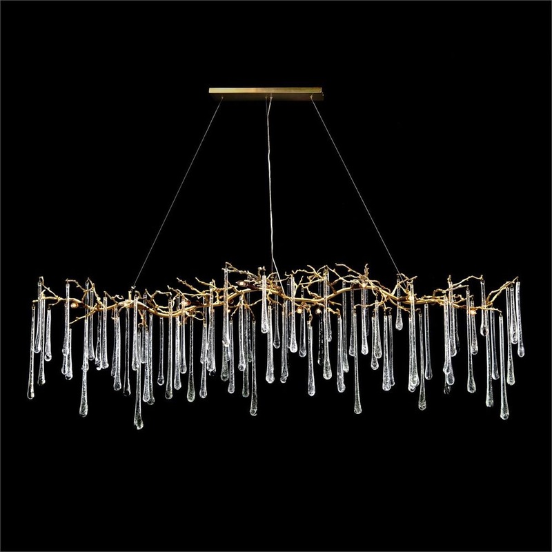 Glass Teardrop Fourteen-Light Horizontal Chandelier – Clear