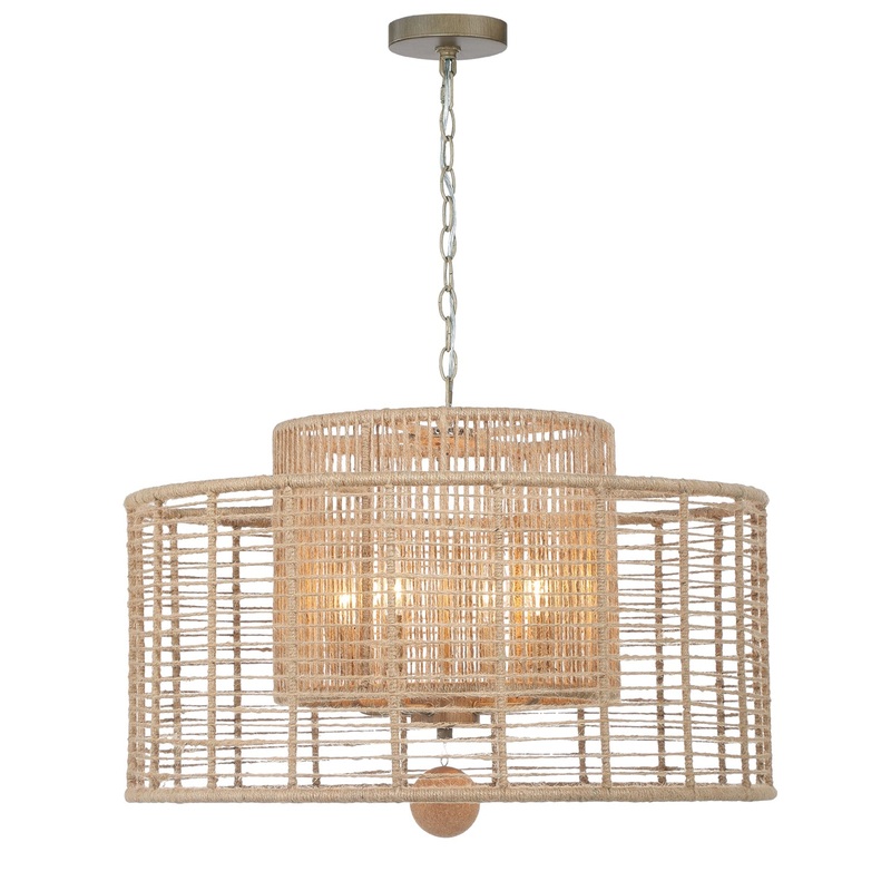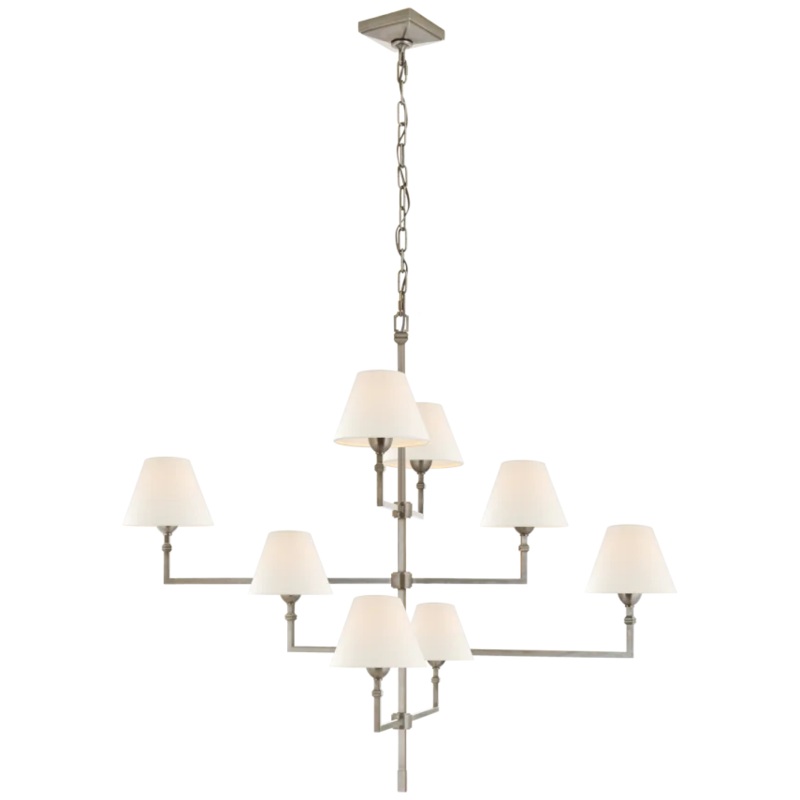 Janet Large Offset Chandelier Antique Nickel with Linen Shades