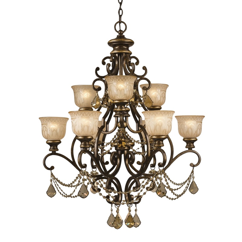 Norwalk 9 Light Clear Italian Crystal Bronze Umber Chandelier