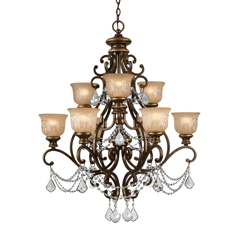 Norwalk 9 Light Clear Crystal Bronze Umber Chandelier