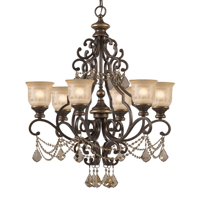 Norwalk 6 Light Clear Italian Crystal Bronze Umber Chandelier