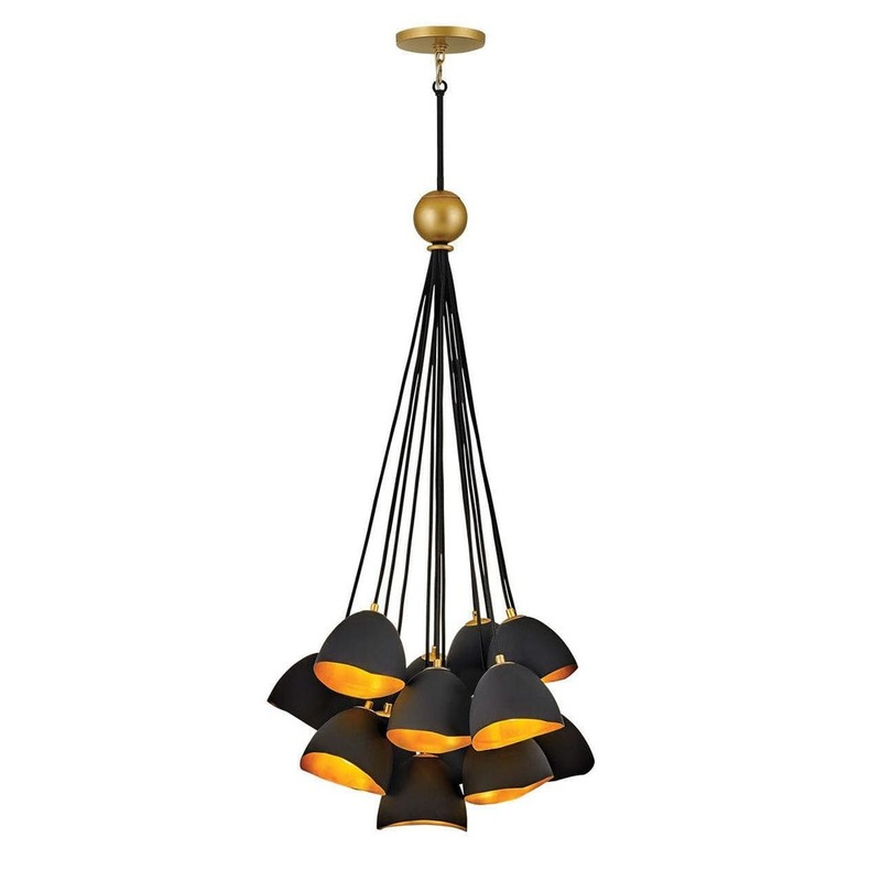Nula Large Single Tier Chandelier Shell Black with Gold Leaf accents