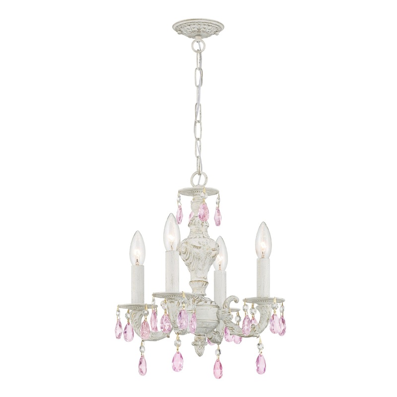 Paris Market 4 Light Rose Crystal Antique White Mini Chandelier