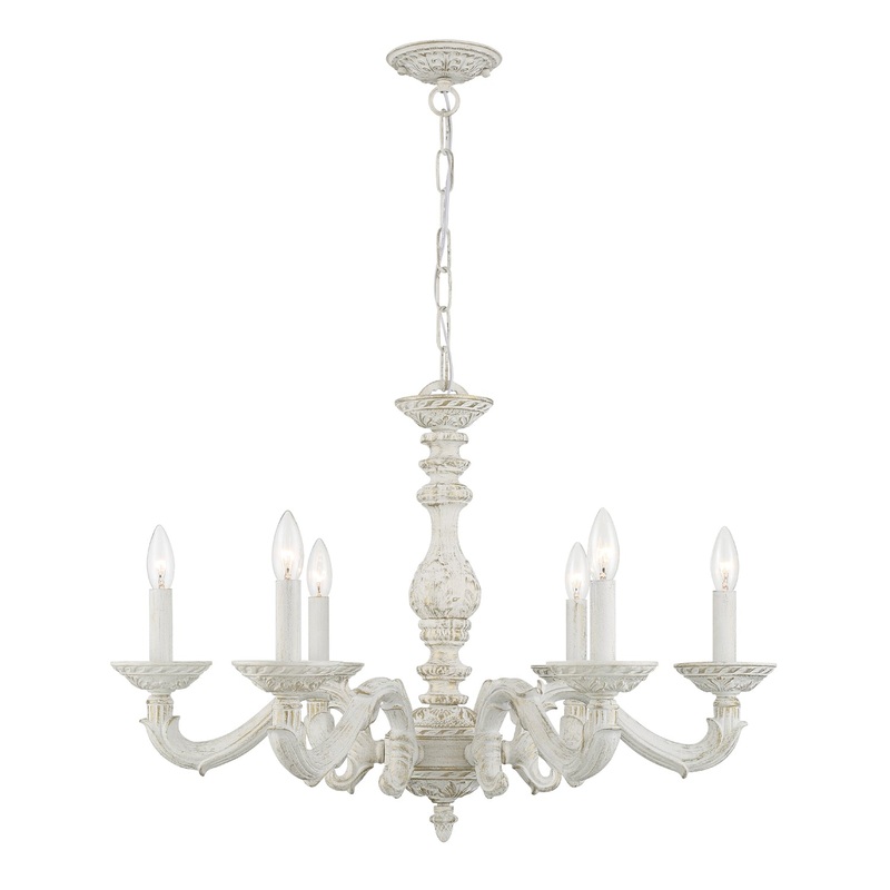 Paris Market 6 Light Swarovski Strass Crystal Antique White Chandelier