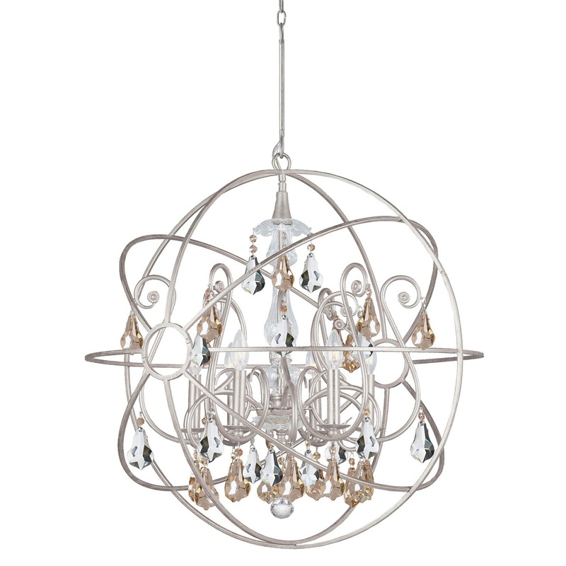 Solaris 6 Light Gold Crystal Olde Silver Sphere Chandelier