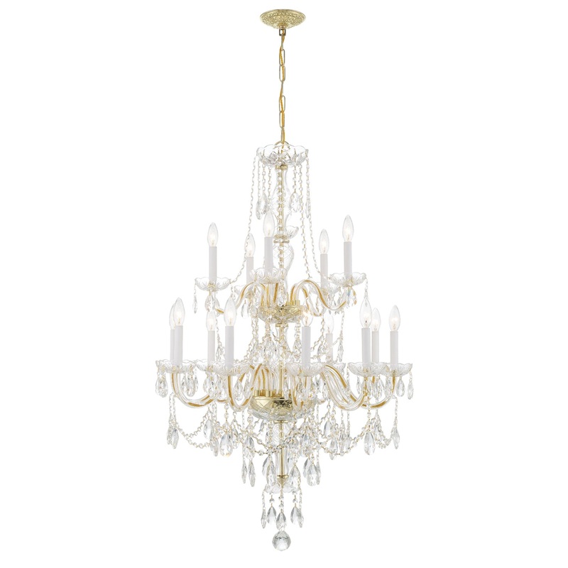 Traditional Crystal 15 Light Hand Cut Crystal Polished Brass Chandelier
