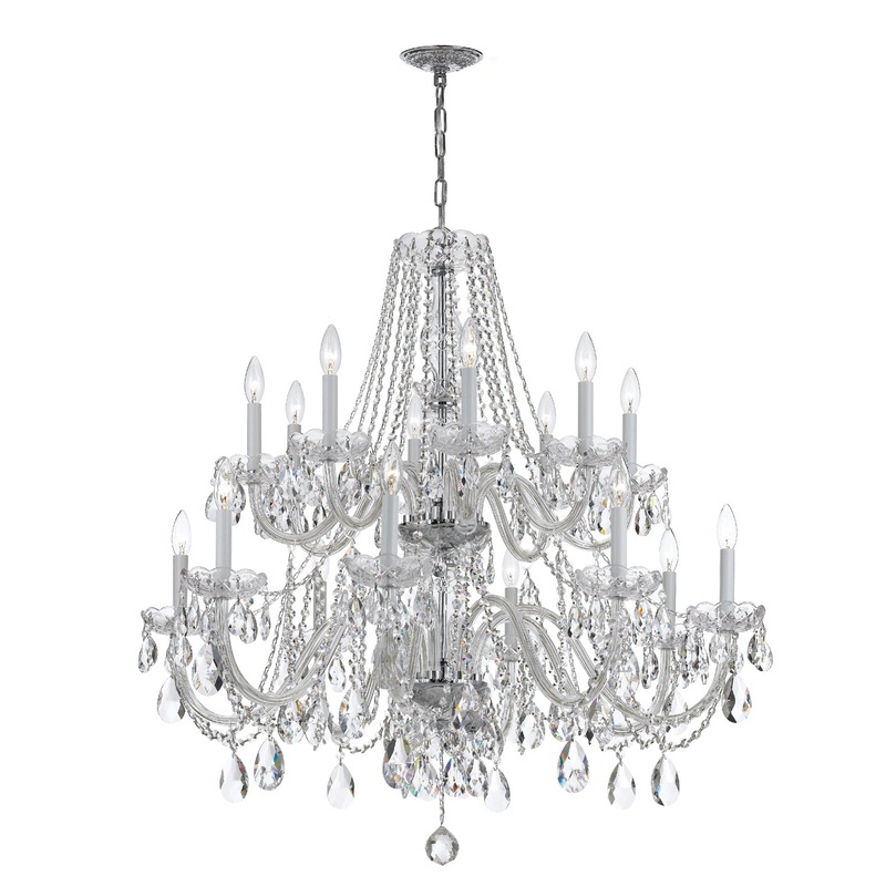 Traditional Crystal 20 Light Hand Cut Crystal Polished Chrome Chandelier