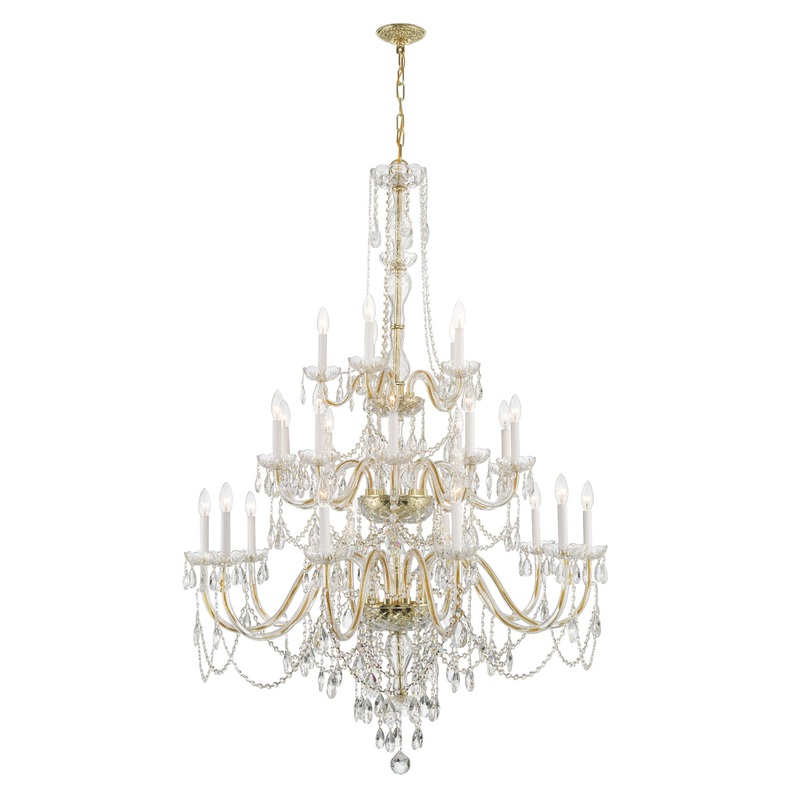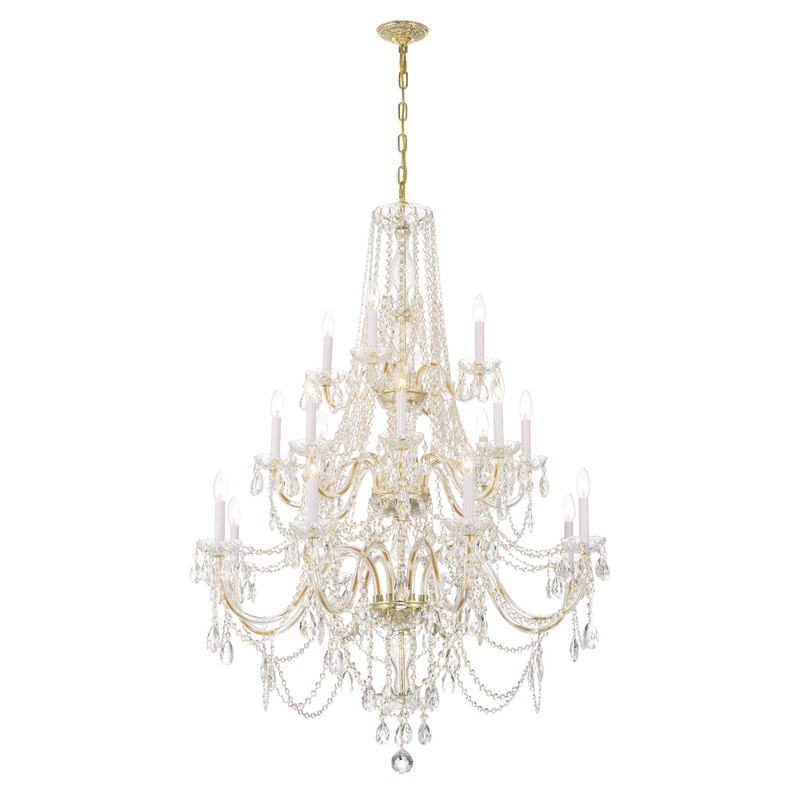 Traditional Crystal 25 Light Hand Cut Crystal Polished Brass Chandelier